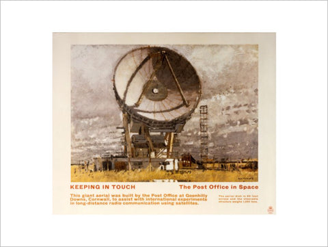 Subject: Poster advertising post office services; featuring Goonhilly Downs radio/satellite dish in Cornwall