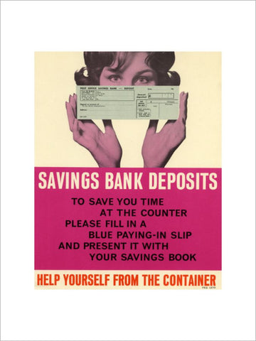 Subject: Poster advertising speedy ways to make deposits at the Post Office Savings Bank
