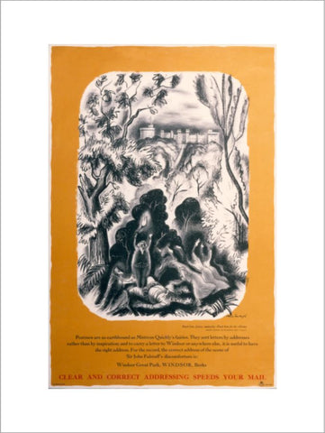 Subject: Poster advising on correct addressing of mail, featuring Windsor Castle