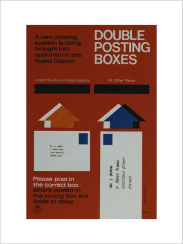Subject: Poster advertising new double aperture letter boxes, featuring two envelopes