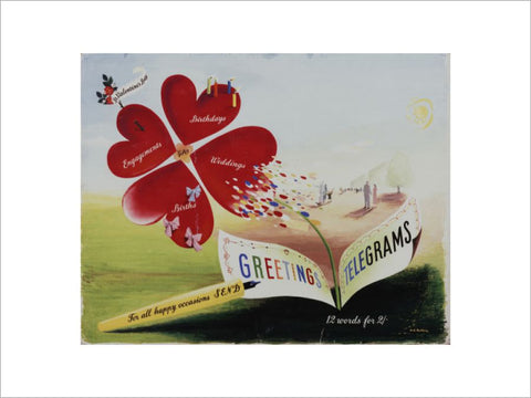 Artwork for a poster, the words: 'please take care' are written on the reverse. Subject: Greetings Telegram service. Artist: Rothholz, Hans Arnold. Media: Board.