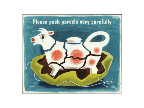 Subject: Poster by Tom Eckersley, featuring a broken china teapot in the shape of a cow